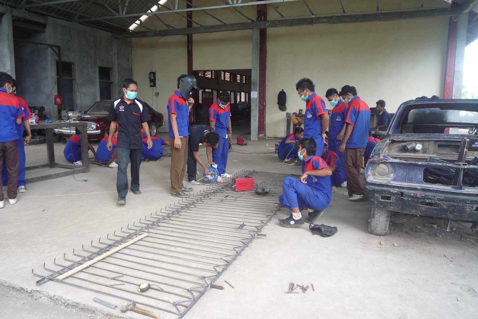 Untuk kompetensi keahlian teknik pemesinan siswa melakukan pembuatan mur pengunci Grinda dengan menggunakan mesin Bubut dan peralatan lainnya, produk yang dihasilkan bias dimanfaatkan untuk peralatan praktik dikompetensi keahlian pemesinan. Sementara kompetensi keahlian pengelasan, siswanya dibebani tugas membuat trali besi untuk jendela, dan pembuatan kerangka atap parker sepeda motor yang langsung dimamfaatkan oleh sekolah sebagai tempat parker siswa dan guru. Kompetensi yang terakhir dalam pembahasan kali ini adalah kompetensi keahlian Teknik sepeda motor, para siswa dibebani membongkar dan memasang sepeda motor Spin, dengan tujuan tune up, pengapian serta kelistrikan.